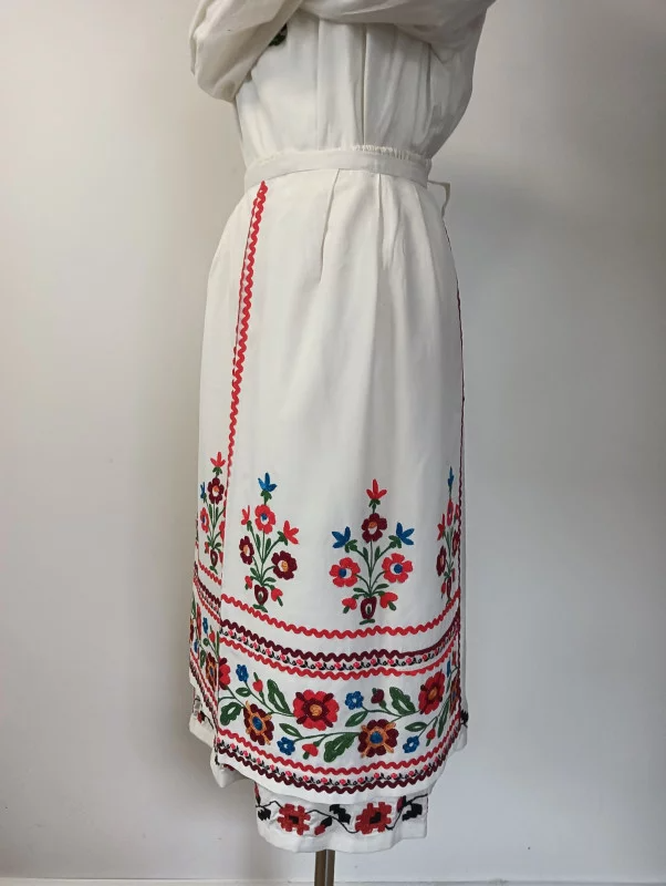 Fartuch biały stylizowany/ukraiński, zdobiony taśmami i haftem.