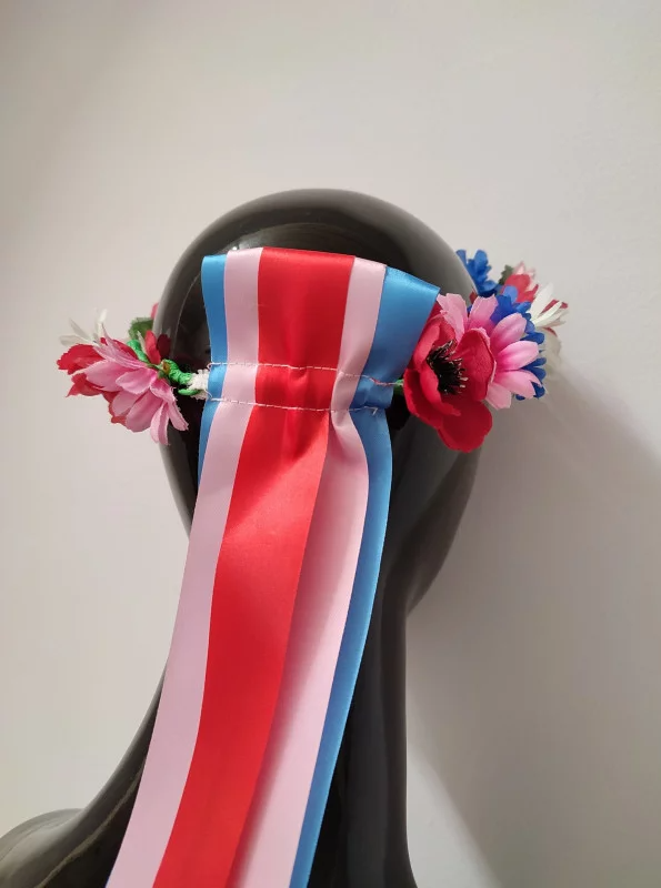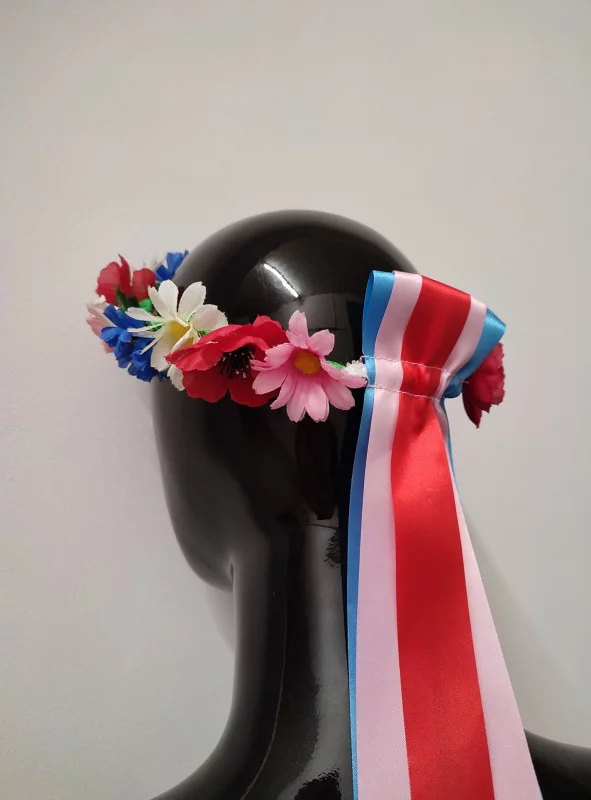 Wykonany z jednego rzędu sztucznych kwiatów.