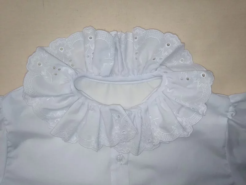 Bluzka biała dziecięca krakowska, dla dziewczynki, z ozdobnym kołnierzem i mankietami.